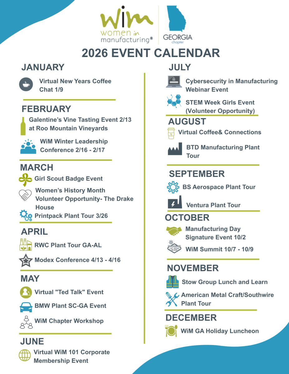If you are interested in any of the WiM Georgia Chapter programs, or would like to volunteer, please contact chapters@womeninmfg.org.